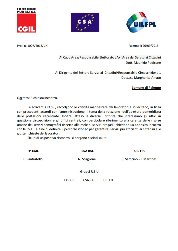 Navigazione articoli FpCgil-CsaRal-UilFpl, istituto della flessibilità oraria in regime di turnazione. FpCgil-CsaRal-UilFpl, Assemblea generale dipendenti Comune di Palermo g. 01.10.2018