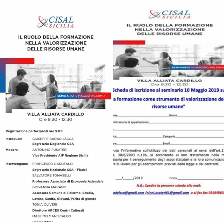 CISAL-CSA Palermo Sicilia al fine di focalizzare l’attenzione sugli strumenti di valorizzazione delle risorse umane, ha ritenuto opportuno organizzare un Seminario, che si svolgerà