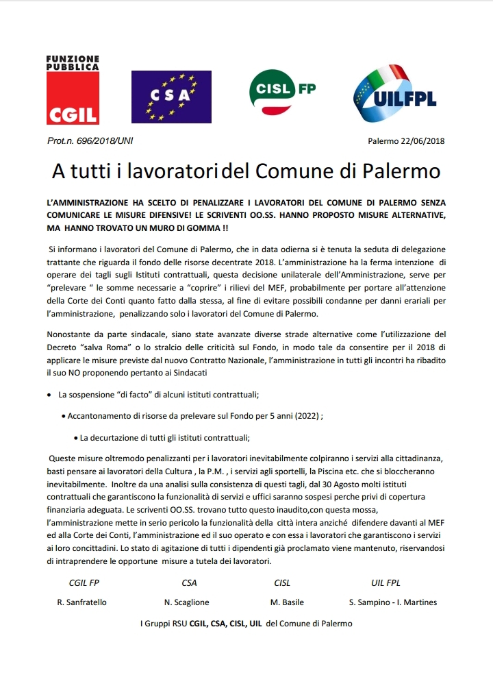 Navigazione articoli CSA, rispetto normativa contrattuale. FP CGIL – CSA – UIL FPL: Comunicato sindacale ai dipendenti Asili Nido e Scuole dell’Infanzia.