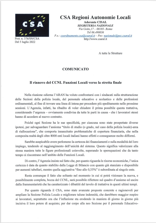 Navigazione articoli Concorsi flop alla Regione, Siad-Csa-Cisal: “Centinaia posti vacanti, si destinino agli interni” RLS Gruppo CSA, Rispetto della normativa contrattuale – Tutela della salute dei lavoratori (sede Palazzo delle Aquile)
