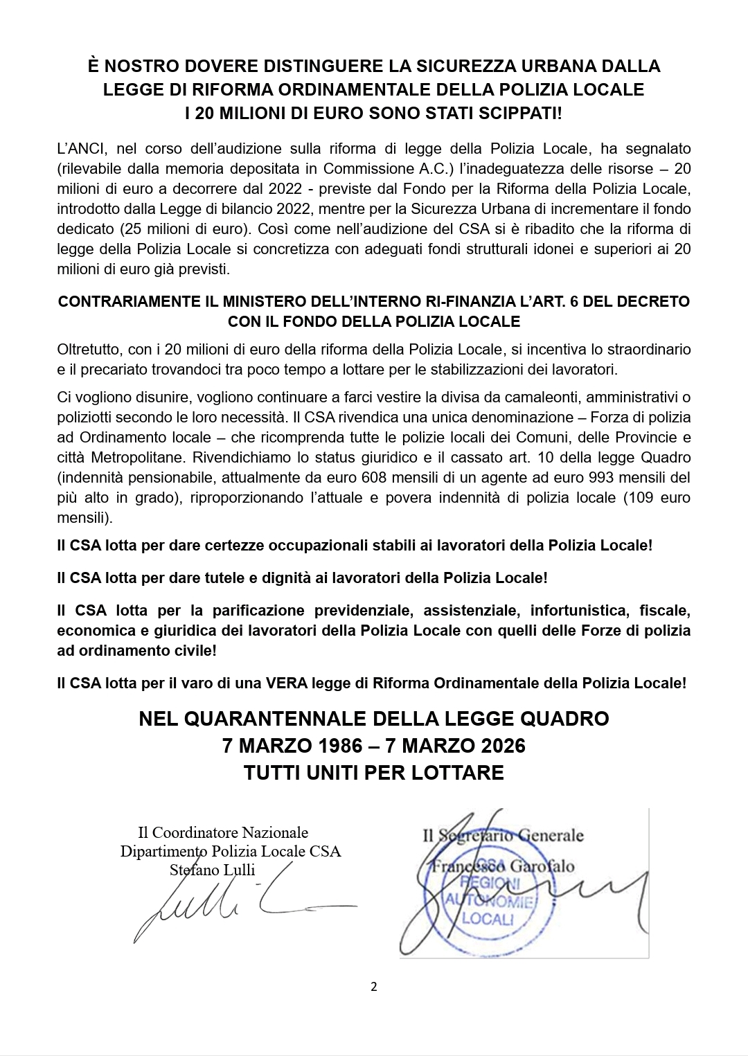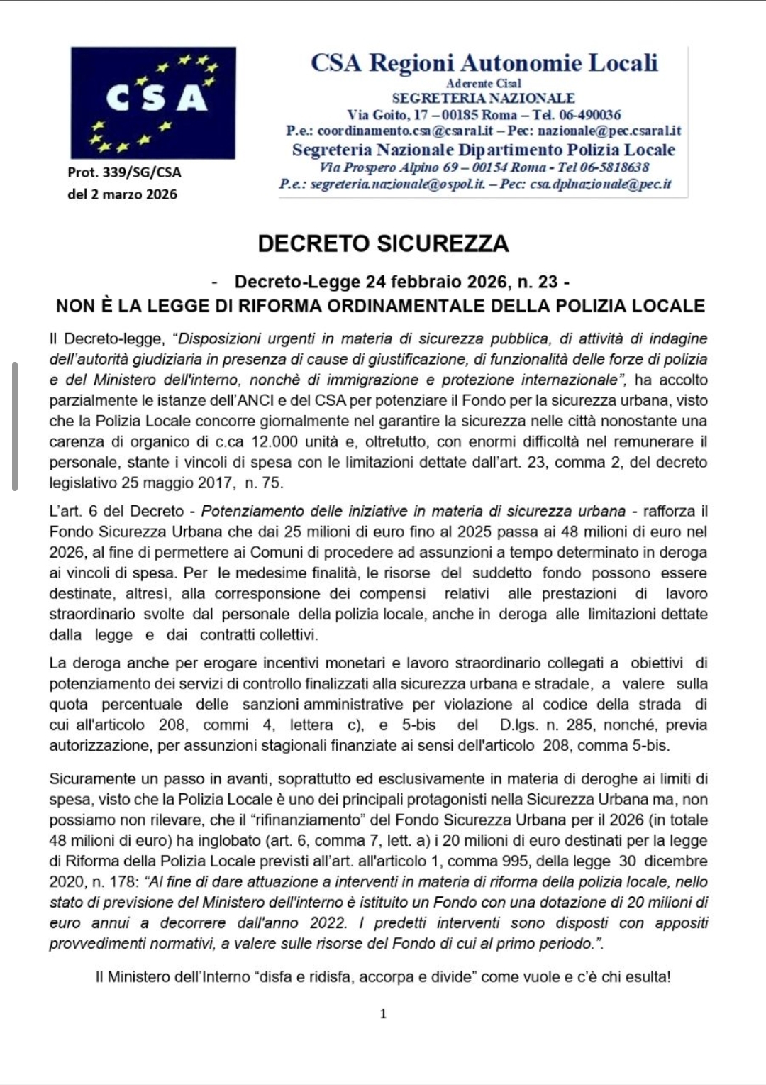 Navigazione articoli Segr. Naz. CSA, CCNL FUNZIONI LOCALI 22/24: TABELLA ARRETRATI PREDISPOSTA DALLA SEGRETERIA GENERALE CSA CISAL, DIFFIDA recupero somme su servizi resi – Stato di agitazione del personale della Polizia Locale.